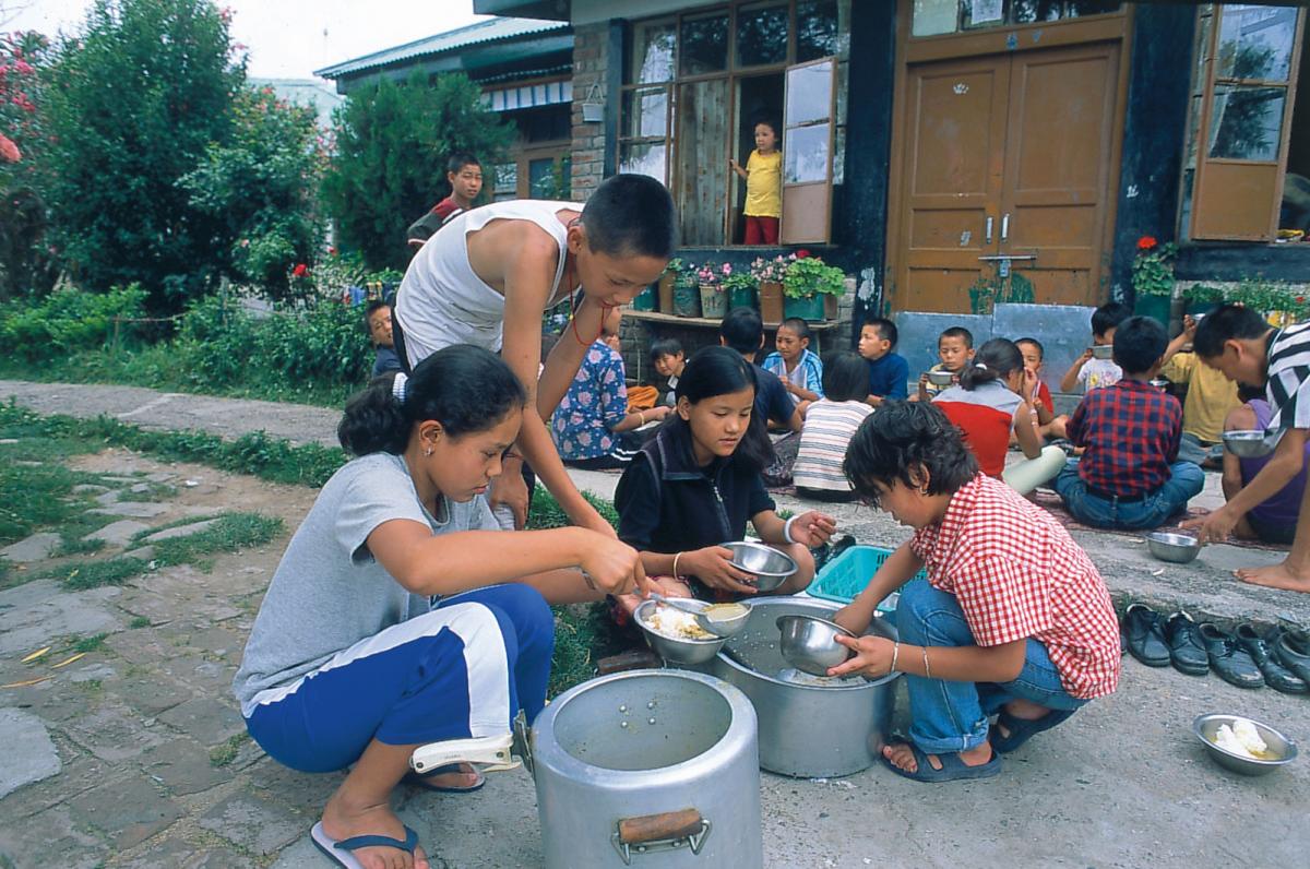 The children’s villages often serve Indian food like rice and vegetables. Tibetan food, such as momos, takes too long to cook.