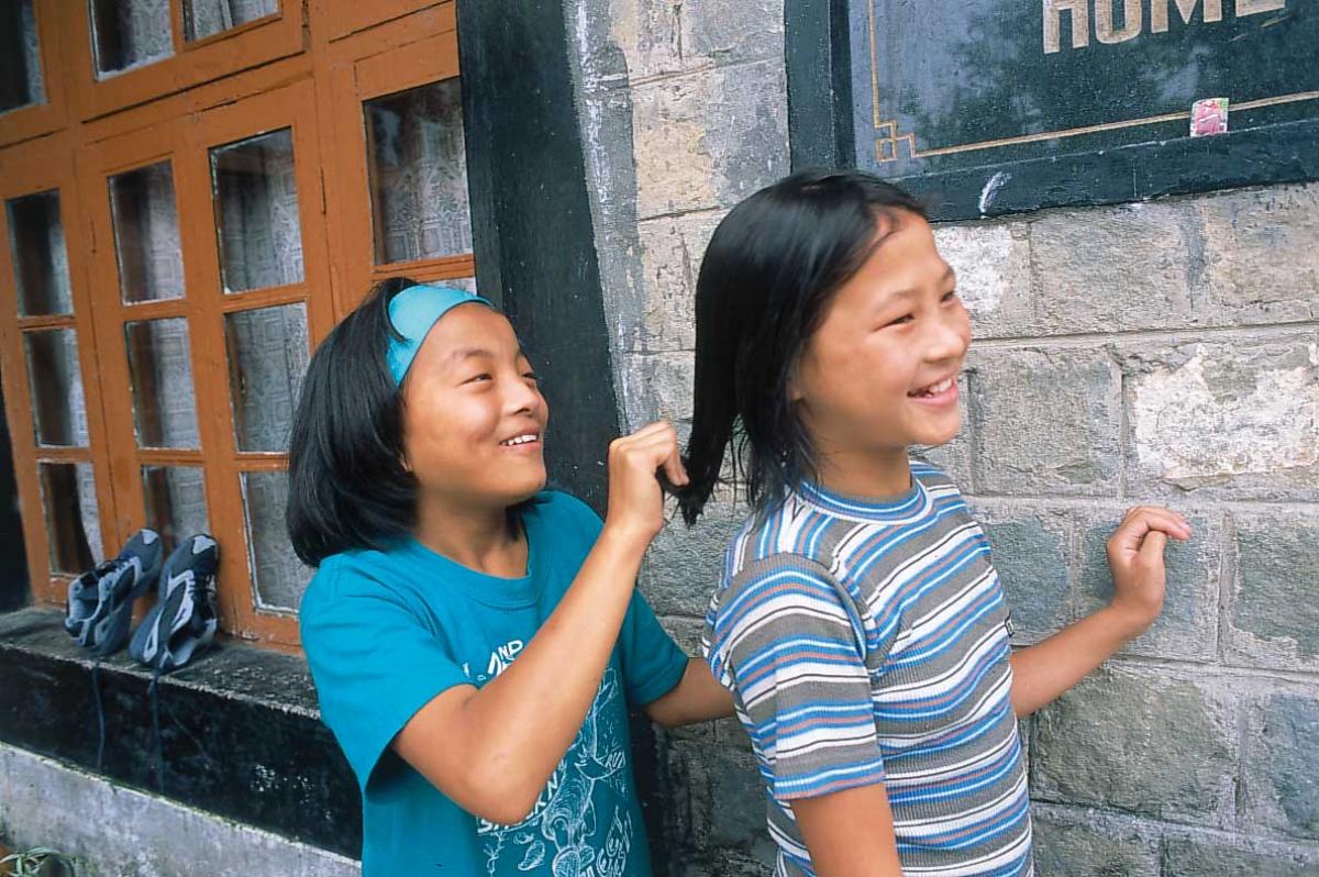 Friends help each other with their hair.© Kim Naylor/WCPF