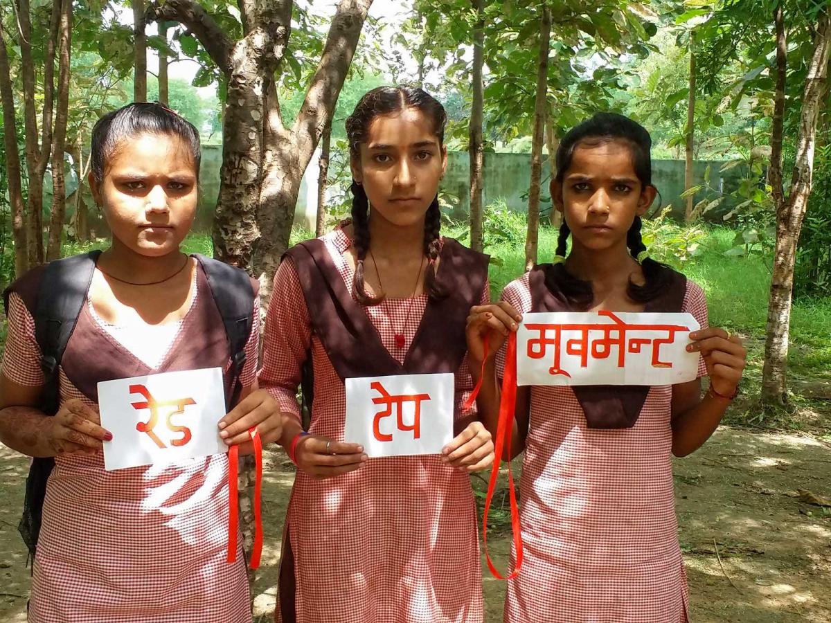 These girls in India protest deforestation in their area by tying signs to trees, calling for the forest companies to stop cutting them down.