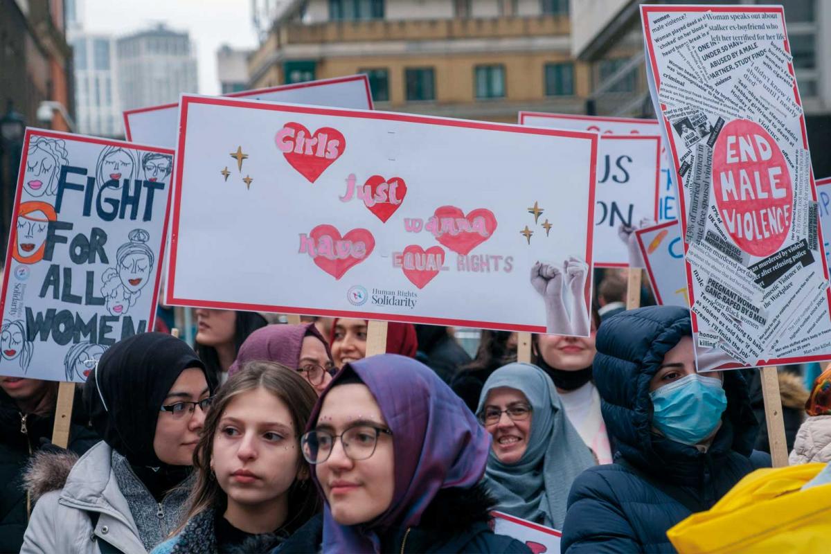 Young girls and women raise their voices against male violence against women in London, UK. Have you ever done something similar?