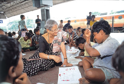 In India, Child Rights Hero Inderjit Khurana opened schools on train platforms for children living and working there.