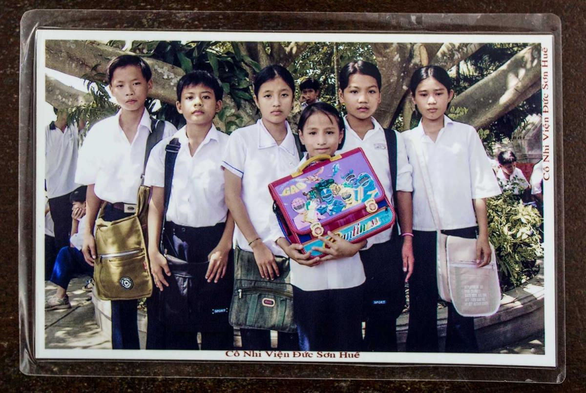 Top photo: Thao, in the pink dress, was given her name by the nuns.