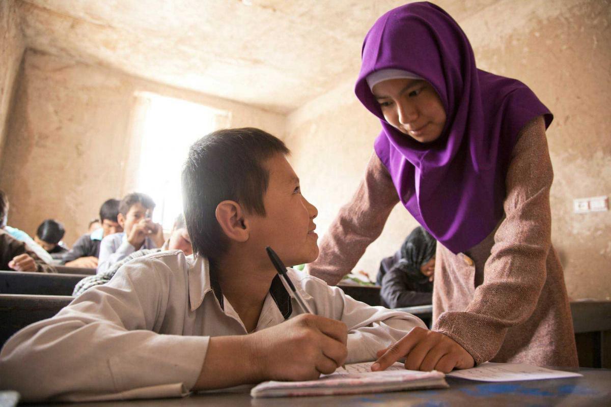 11.15 a.m. Muhammed studies English at Sakena Yacoobi’s Learning Center. His teacher Zahra Alipour, who is 18, helps him. “Muhammed does well at school, but his family has no relatives here, so there’s no one who can help them. They are short of money, for example, Muhammed has the same shoes in summer and winter. It’s freezing when it snows. But I think he’ll be fine – he’s smart and he has lots of friends,” says Zahra.