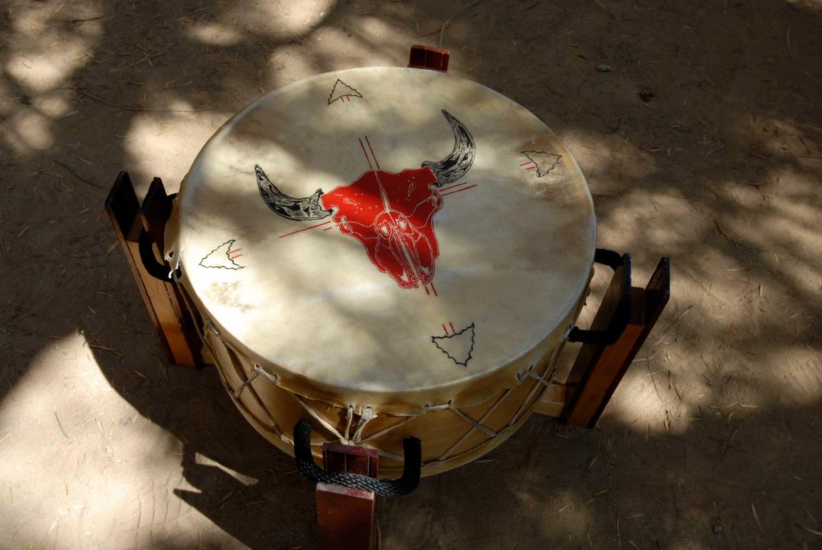 Her dad’s drum is made of wood and the skin is made of cow hide. © Kim Naylor/WCPF