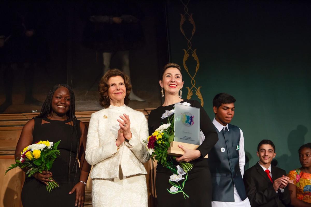 Rachel Lloyd received the millions of voting children’s World’s Children’s Prize for the Rights of the Child from Queen Silvia. On the left is her colleague, Shaquana Blount.
