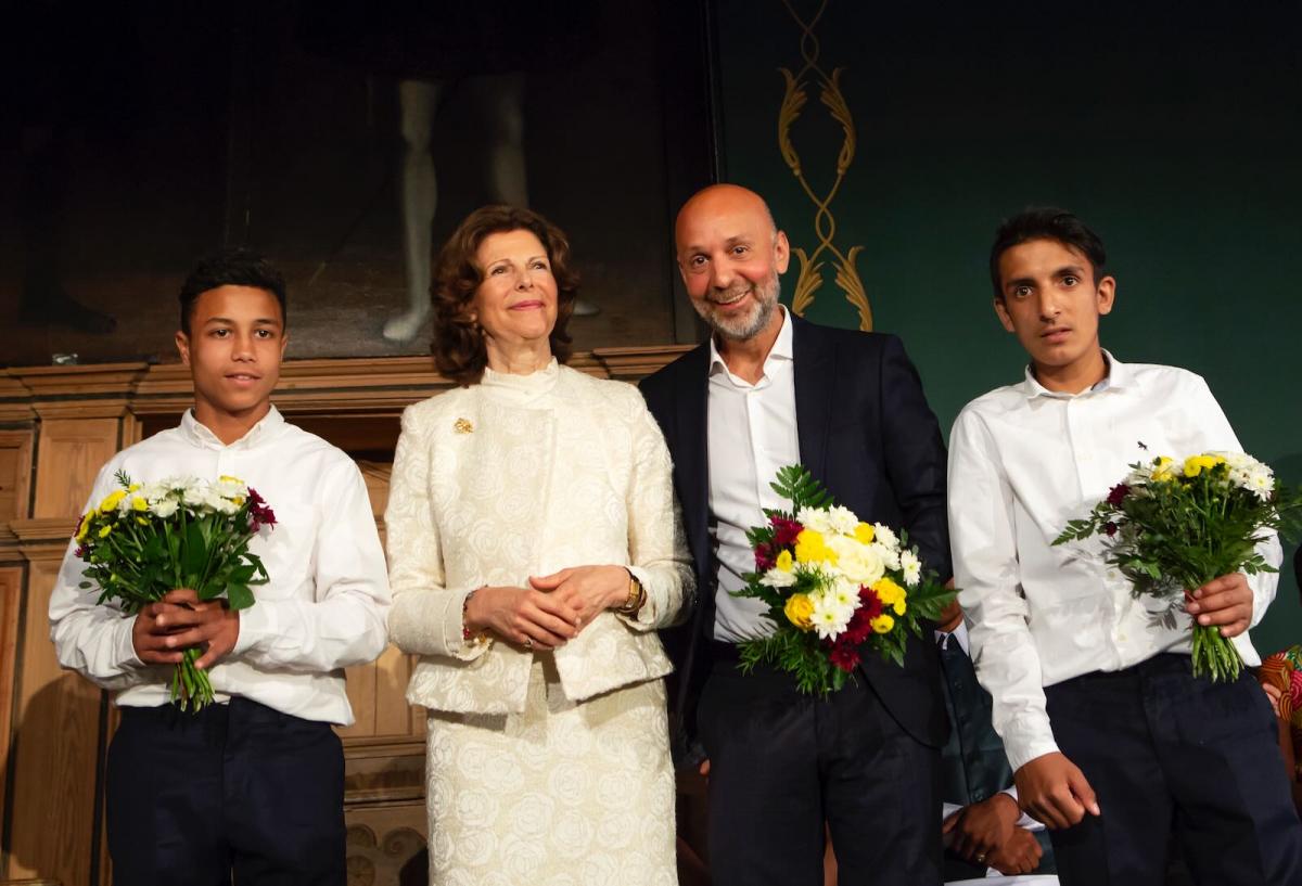 The annual World’s Children’s Prize Award Ceremony 2018 was led by the Child Jury at Gripsholm Castle in Mariefred in Sweden. All three Child Rights Heroes were honoured and awarded prize money for their work for children. Sweden’s Queen Silvia helps the members of the Child Jury present the awards.