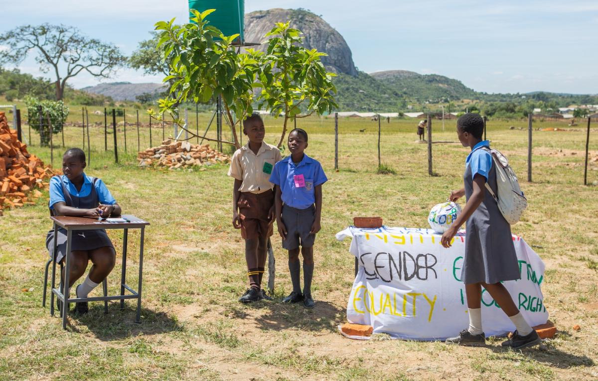 “Kimberly and I are here to share with you our knowledge about children’s rights, climate change, girls’ rights and the Global Goals. Zimbabwe signed up to the Global Goals with the other countries of the world so that our country will get better. Do you know that girls and boys have equal rights? Girls should get to complete their education just as boys do. We as Child Rights Ambassadors say: Let us stop child marriage, because if you marry off a child, that is a crime!”