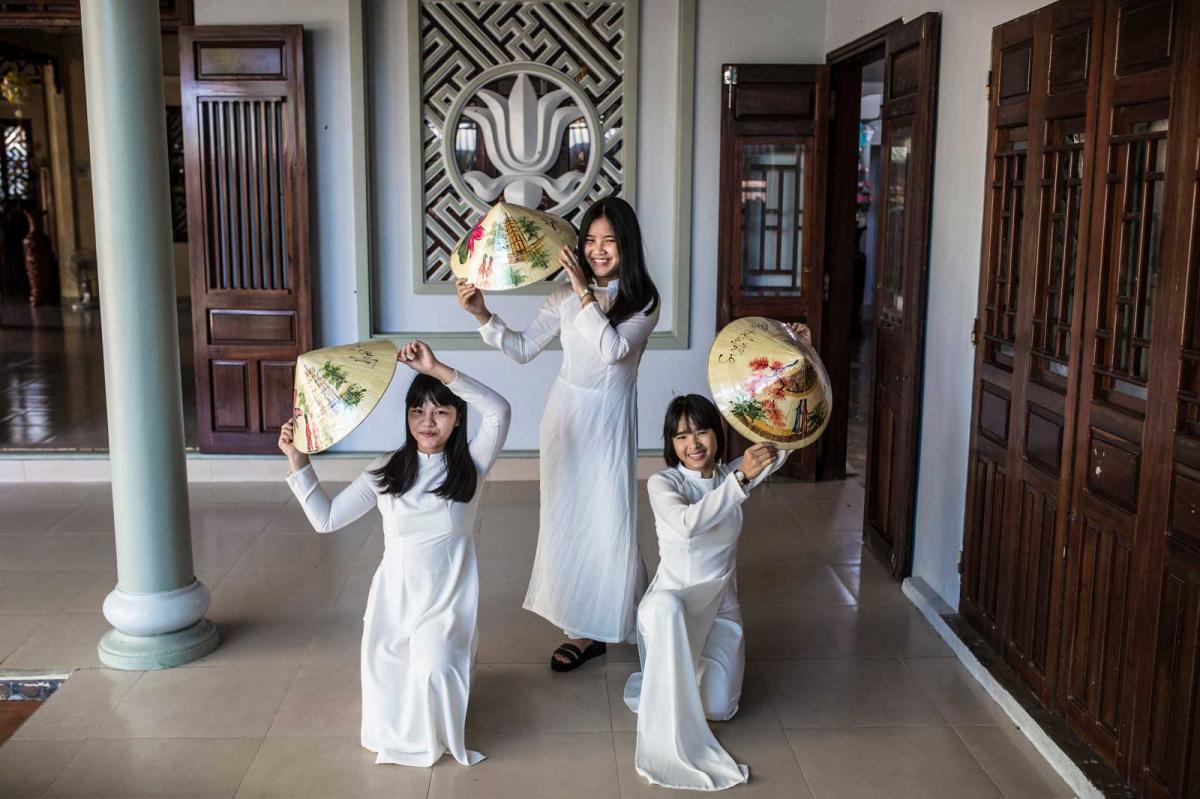 It takes ages to choose the music. Yen argues with her friends Nga and Phouc about which South Korean pop star is best. In the end they agree on more traditional Vietnamese music and start dancing the ‘hat dance’ to the rhythm of the music, while making special movements with their hats.